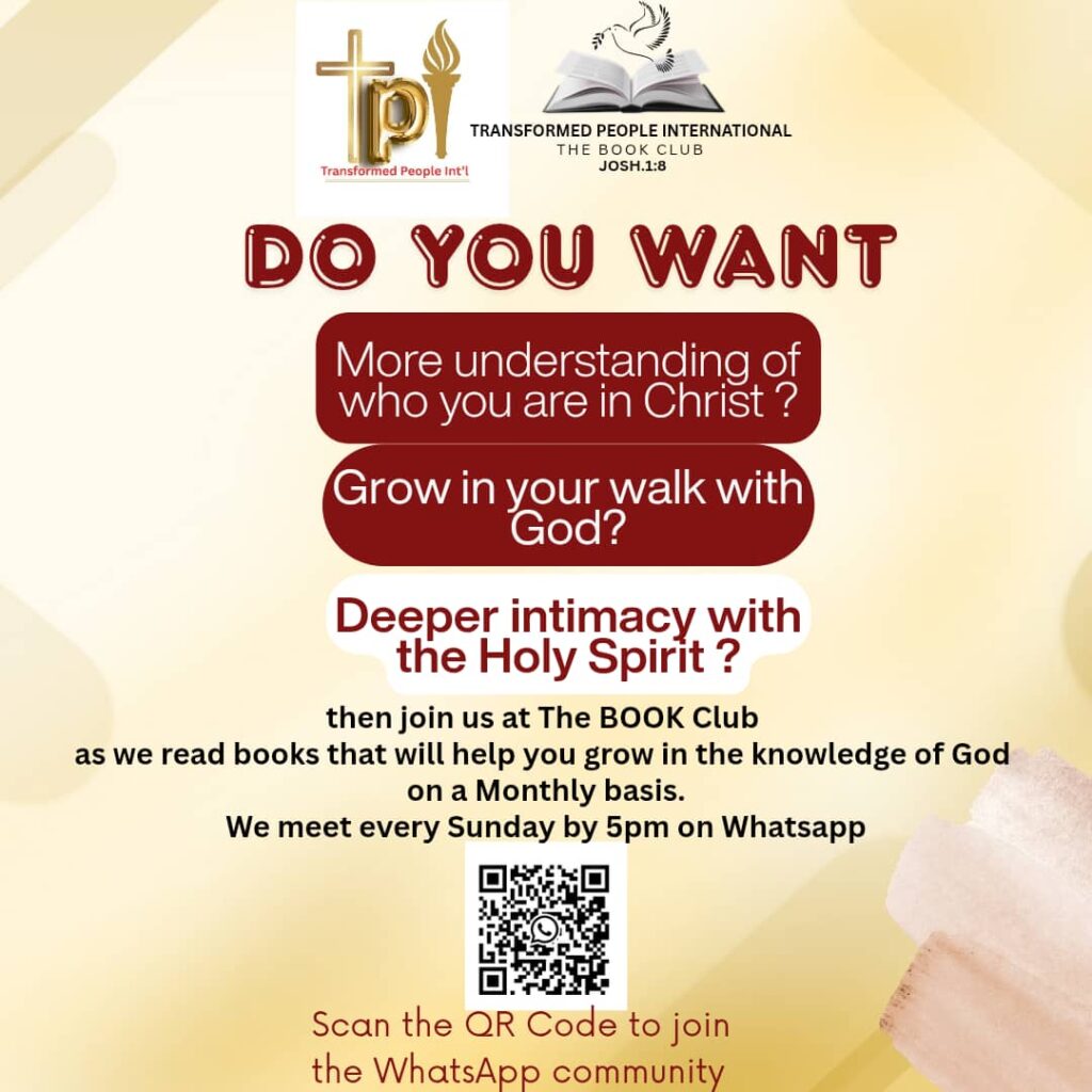 TPI Book Club means Transformed People International Book Club where we read a Christian inspired book every month that build us in knowledge of God’s word and deepen our intimacy with the Holy Spirit.
